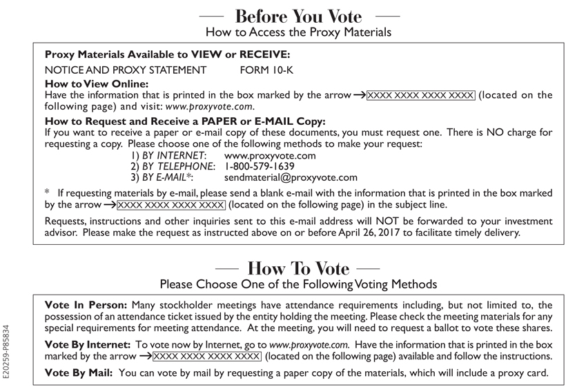 May 10, 2017: Our Proxy Statement for the 2017 Annual Meeting of Stockholders and Annual Report on Form 10-K for