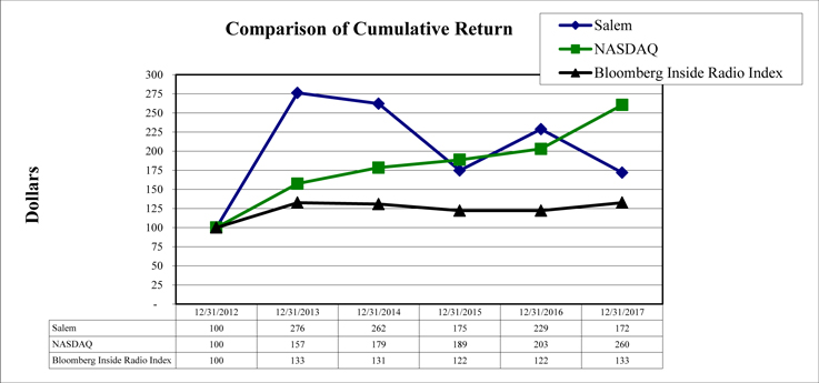 You should not place undue reliance on these forward-looking statements, which reflect our expectations based upon data available to the company as of the date of this report. Such statements are subject to certain risks and uncertainties that could cause actual results to differ materially from expectations. These risks, as well as other risks and uncertainties, are detailed in Salem’s reports on Forms 10-K, 10-Q and 8-K filed with or furnished to the Securities and Exchange Commission. Except as required by law, the company undertakes no obligation to update or revise any forward-looking statements made in this report. Any such forward-looking statements, whether made in this report or elsewhere, should be considered in context with the various disclosures made by Salem about its business. These projections and other forward-looking statements fall under the safe harbors of Section 27A of the Securities Act of 1933, as amended (the “Securities Act”), and Section 21E of the Securities Exchange Act of 1934, as amended (the “Exchange Act”).